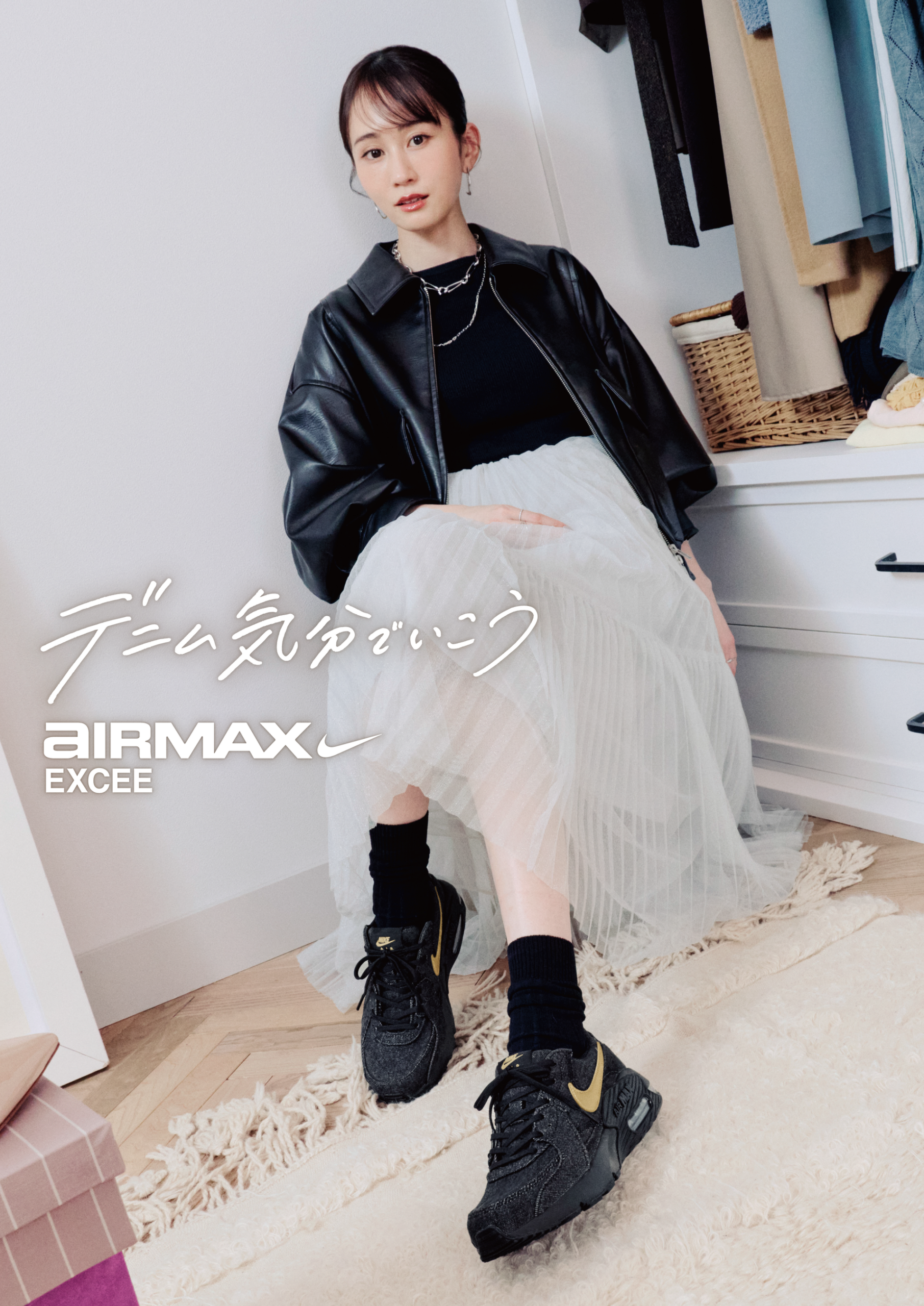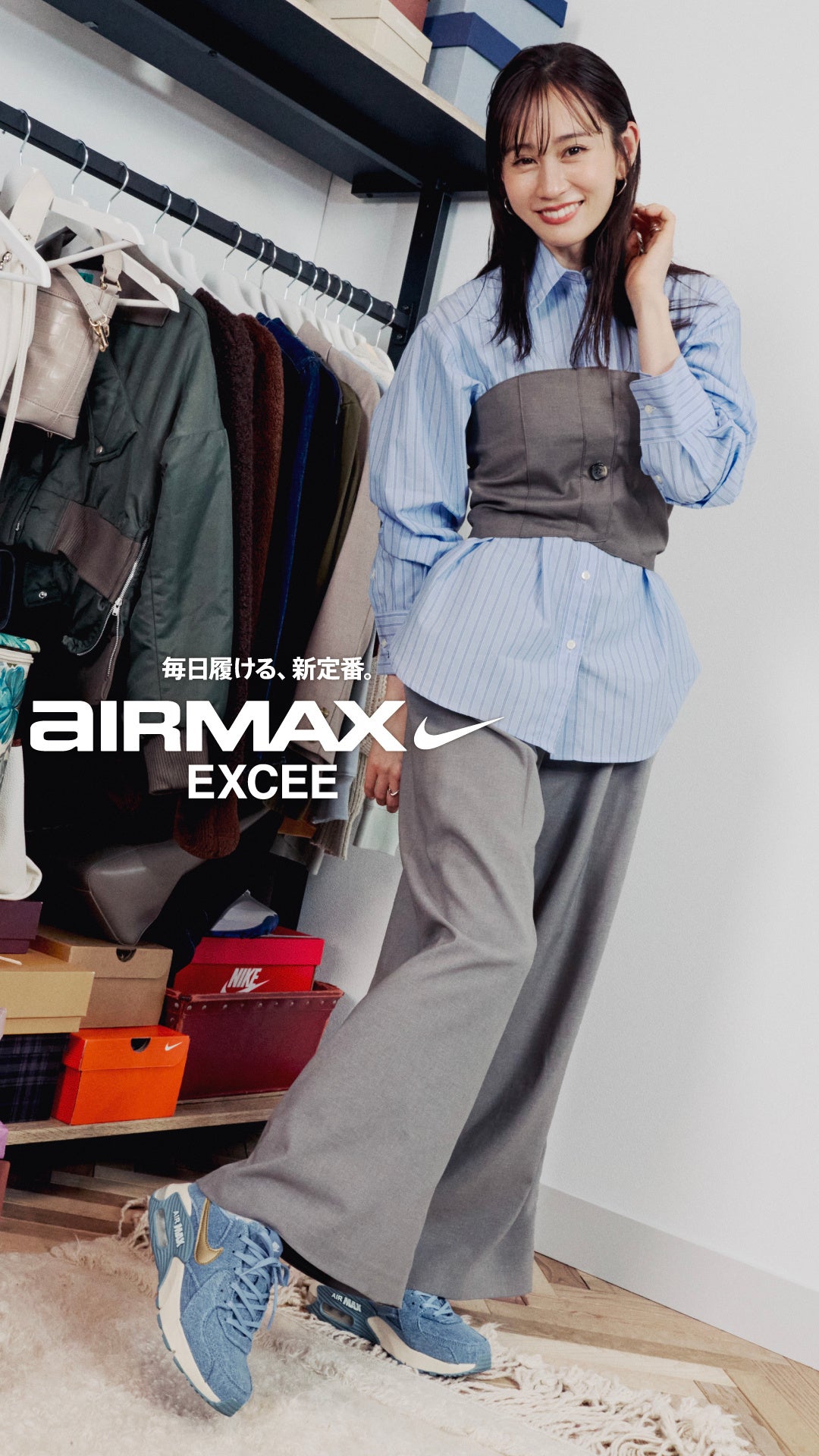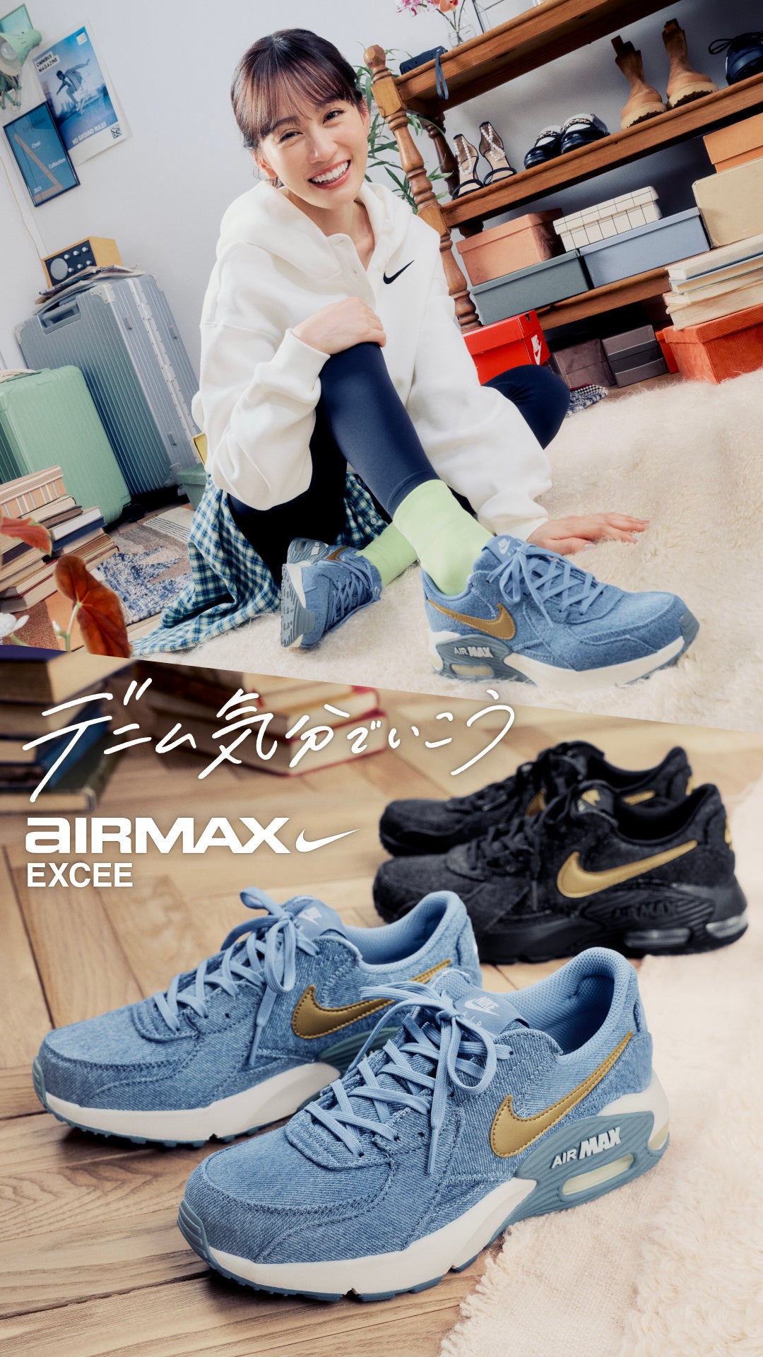 また、前田敦子さんが「AIR MAX EXCEE DENIM」を主役に、カジュアルでスポーティーなスタイルから、きちんと感のあるお仕事モード、洗練された外出スタイルまで、この春取り入れたい多様なコーディネートを提案します。デニム素材ならではの軽やかさと抜け感が、“気負わず履ける心地よさ”と晴れやかな気持ちを表現しています。