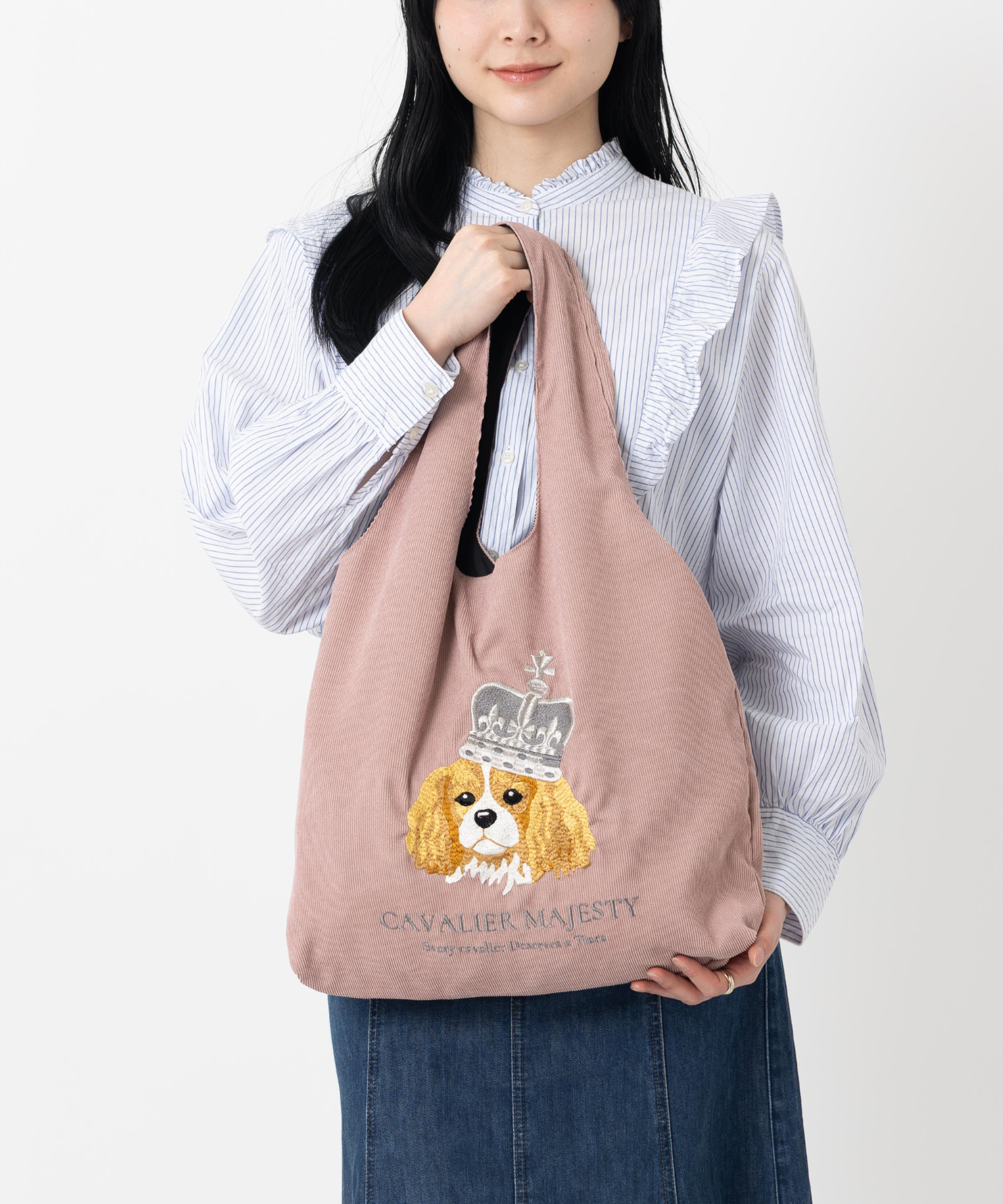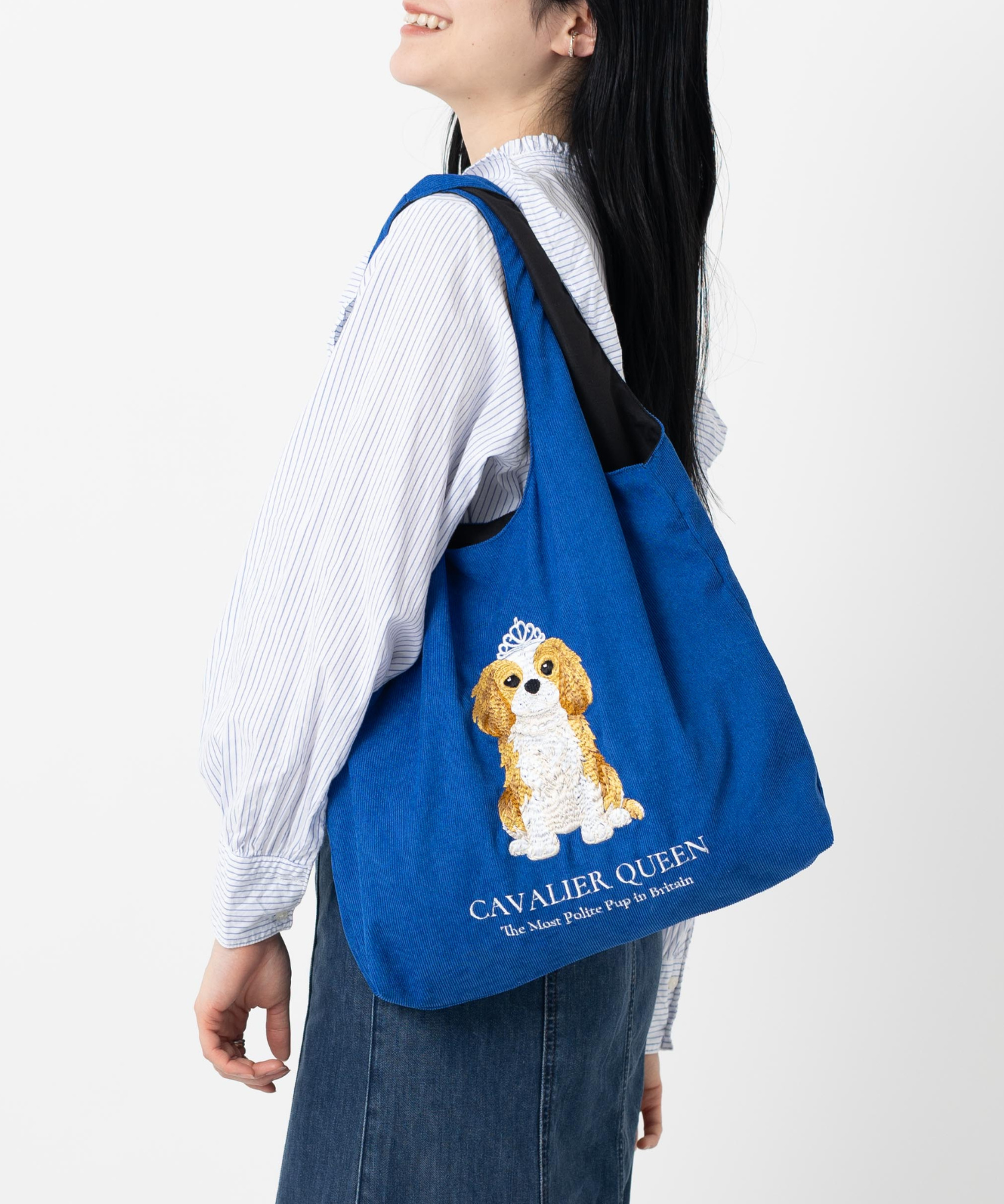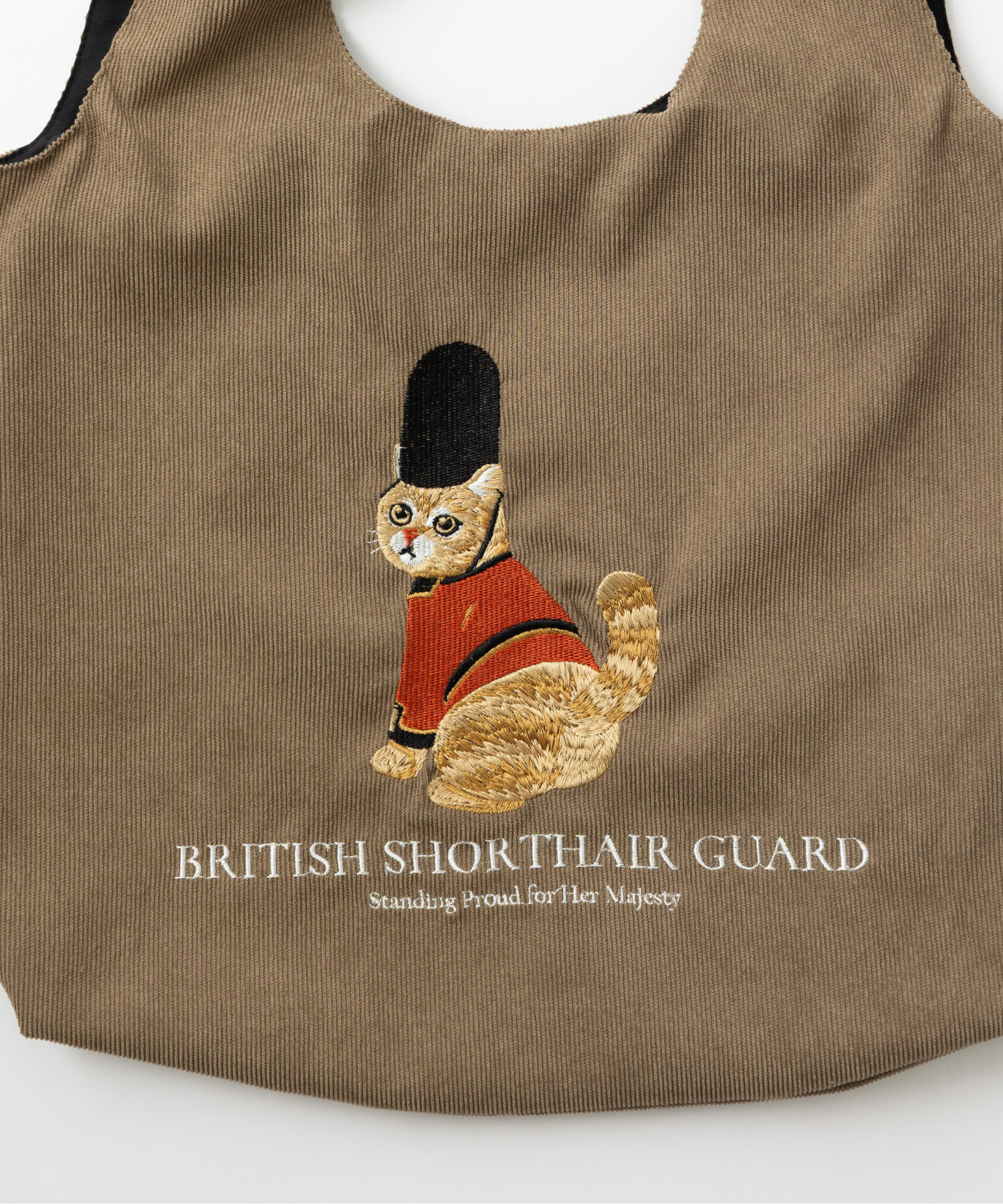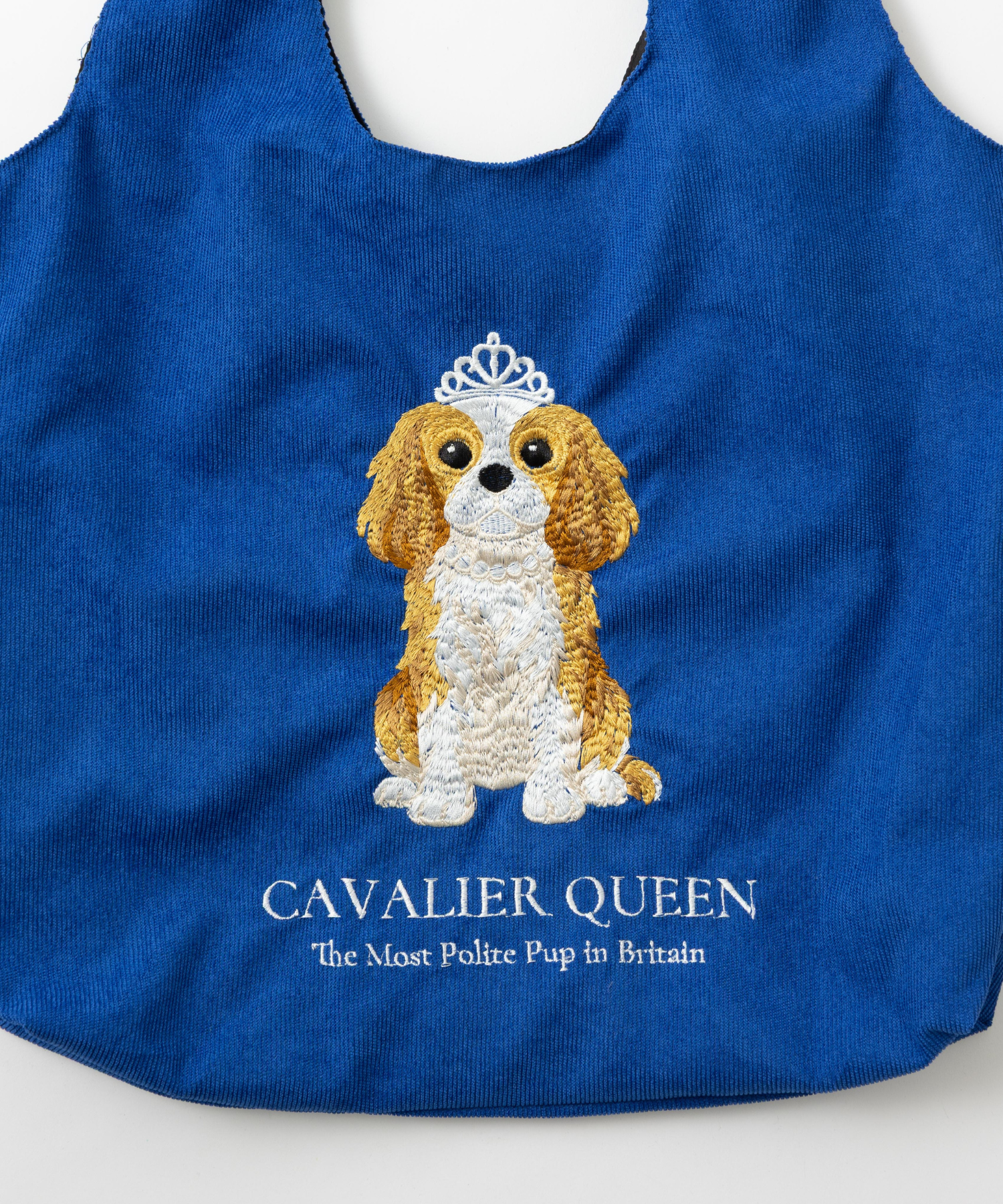 ■ 英国 猫犬デザイン刺繍 コーデュロイトートバッグ