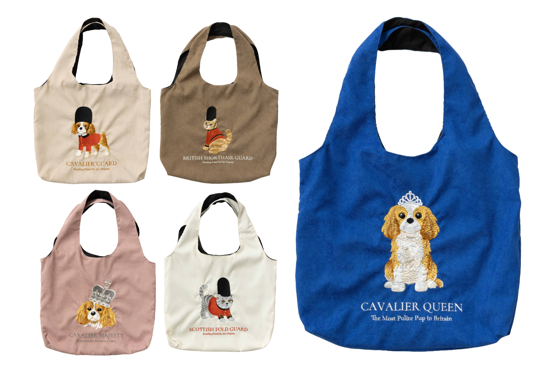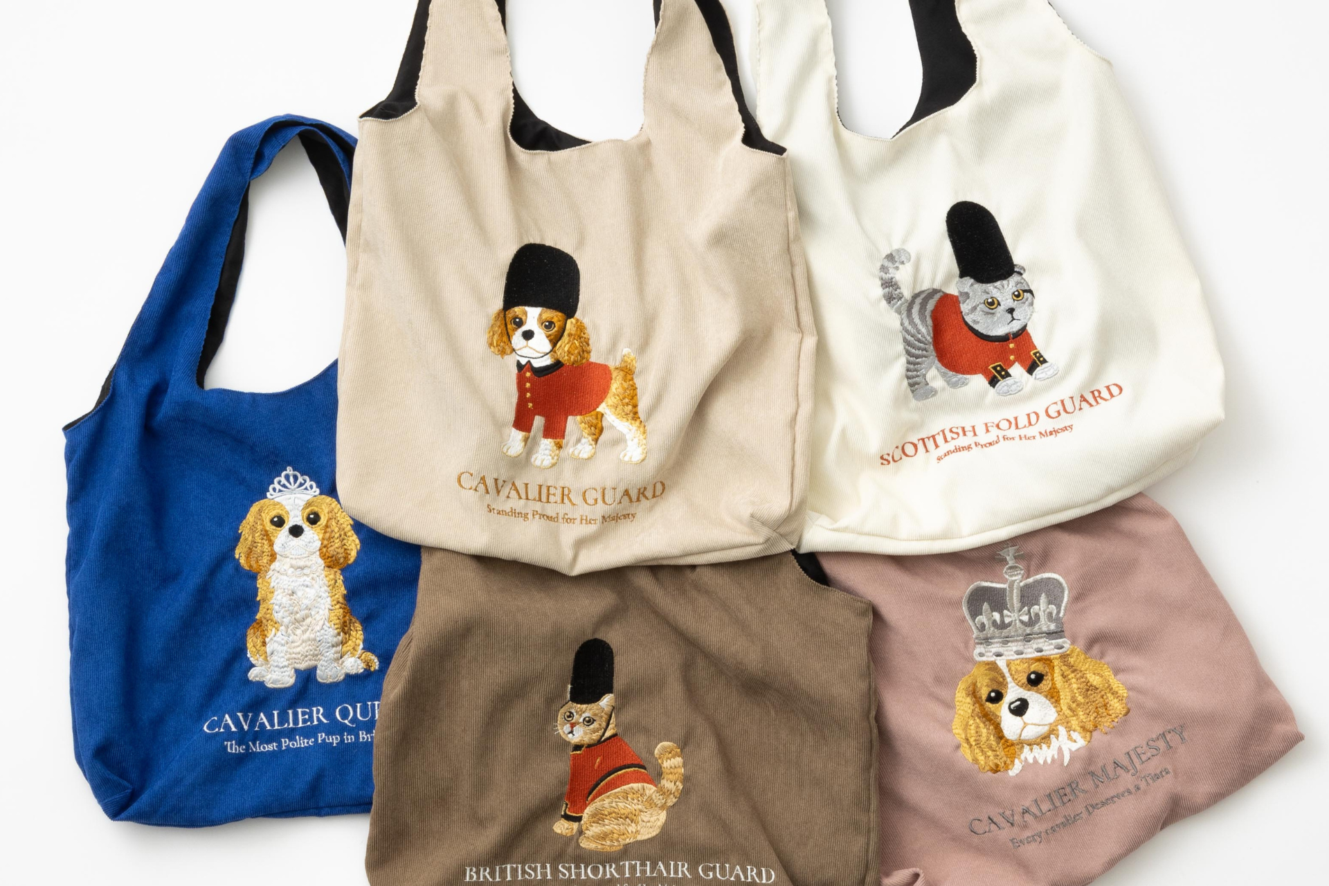 『英国 猫犬デザイン刺繍 コーデュロイトートバッグ』が新登場。