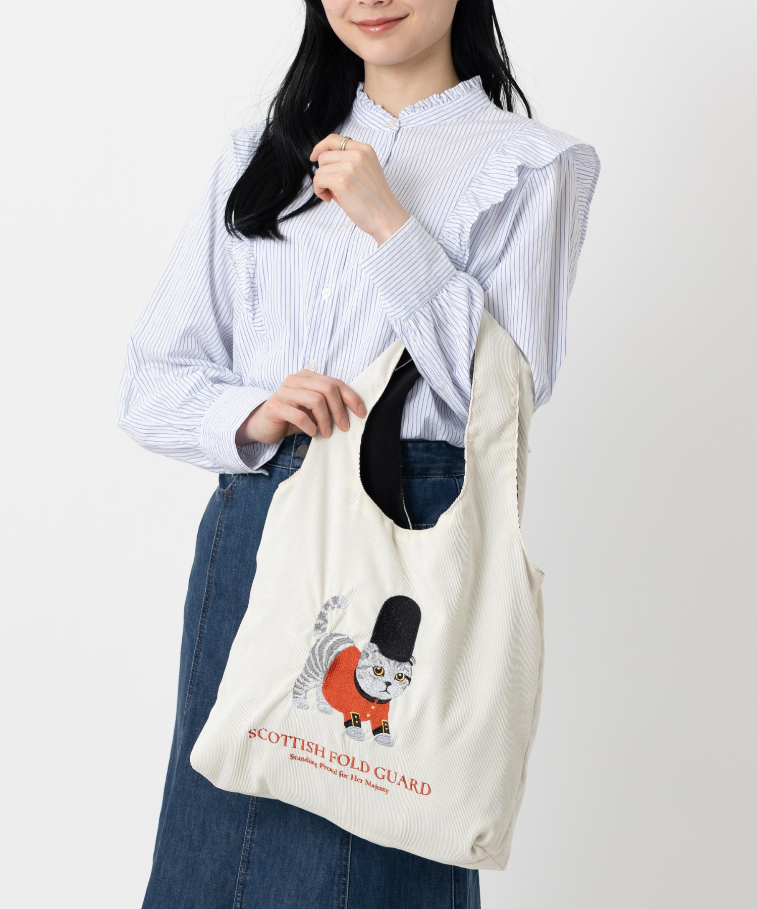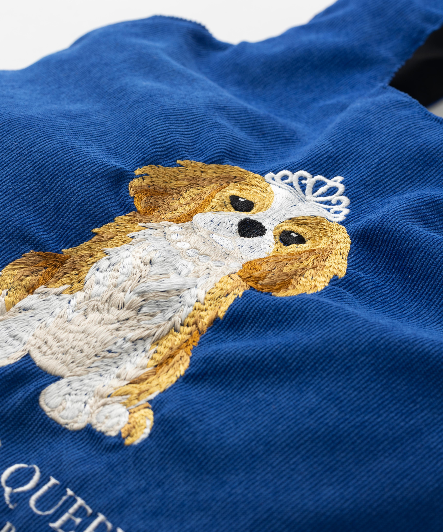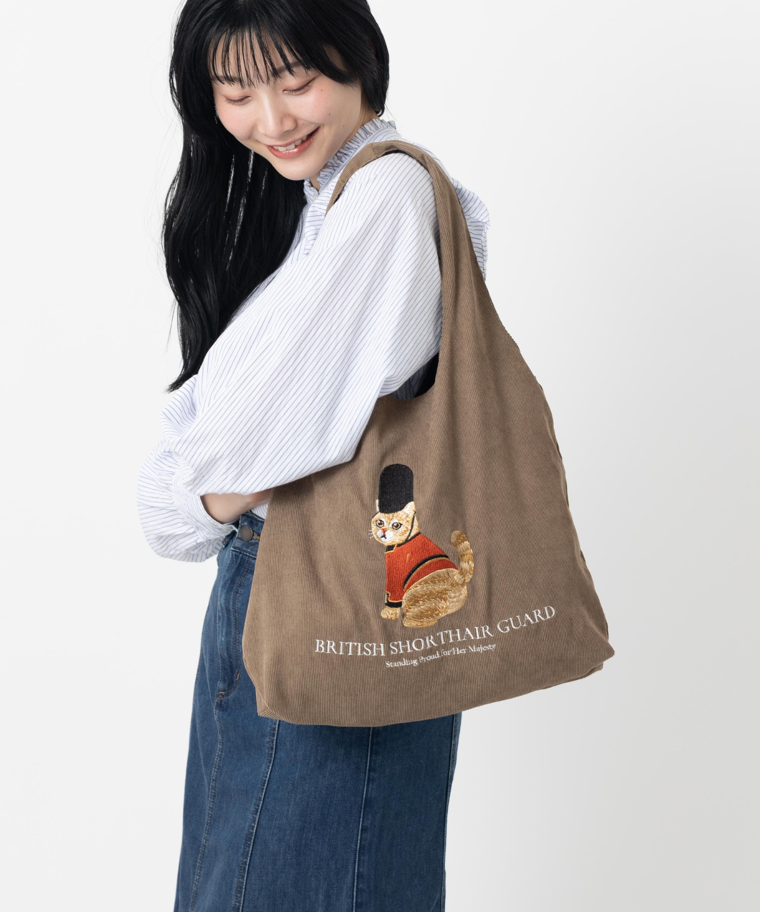 英国 猫犬デザイン刺繍 コーデュロイトートバッグ