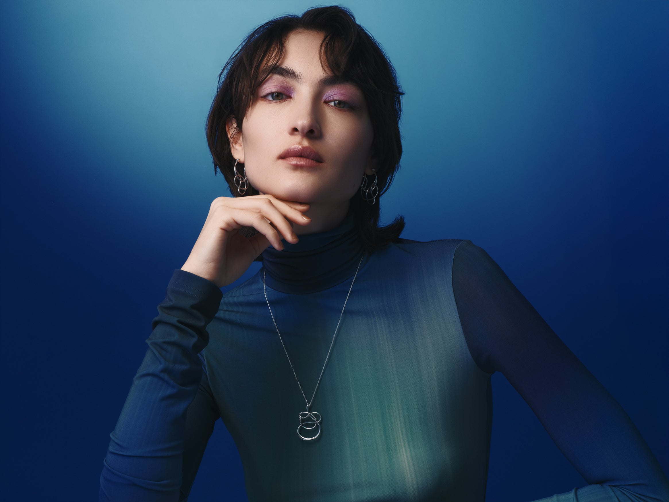 瑞々しい銀の輝きと軽やかなボリューム感。春の装いに新緑の息吹を添えて。