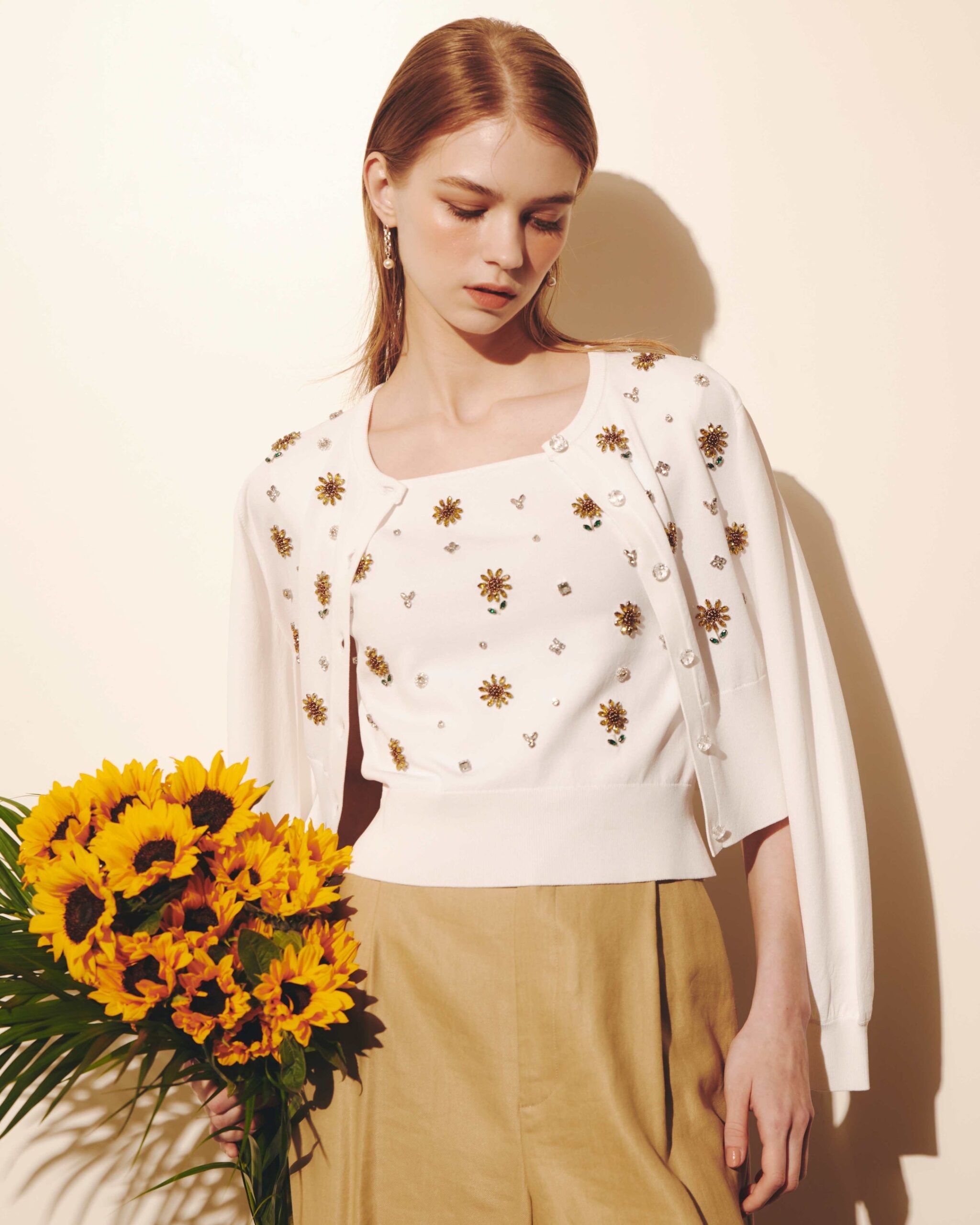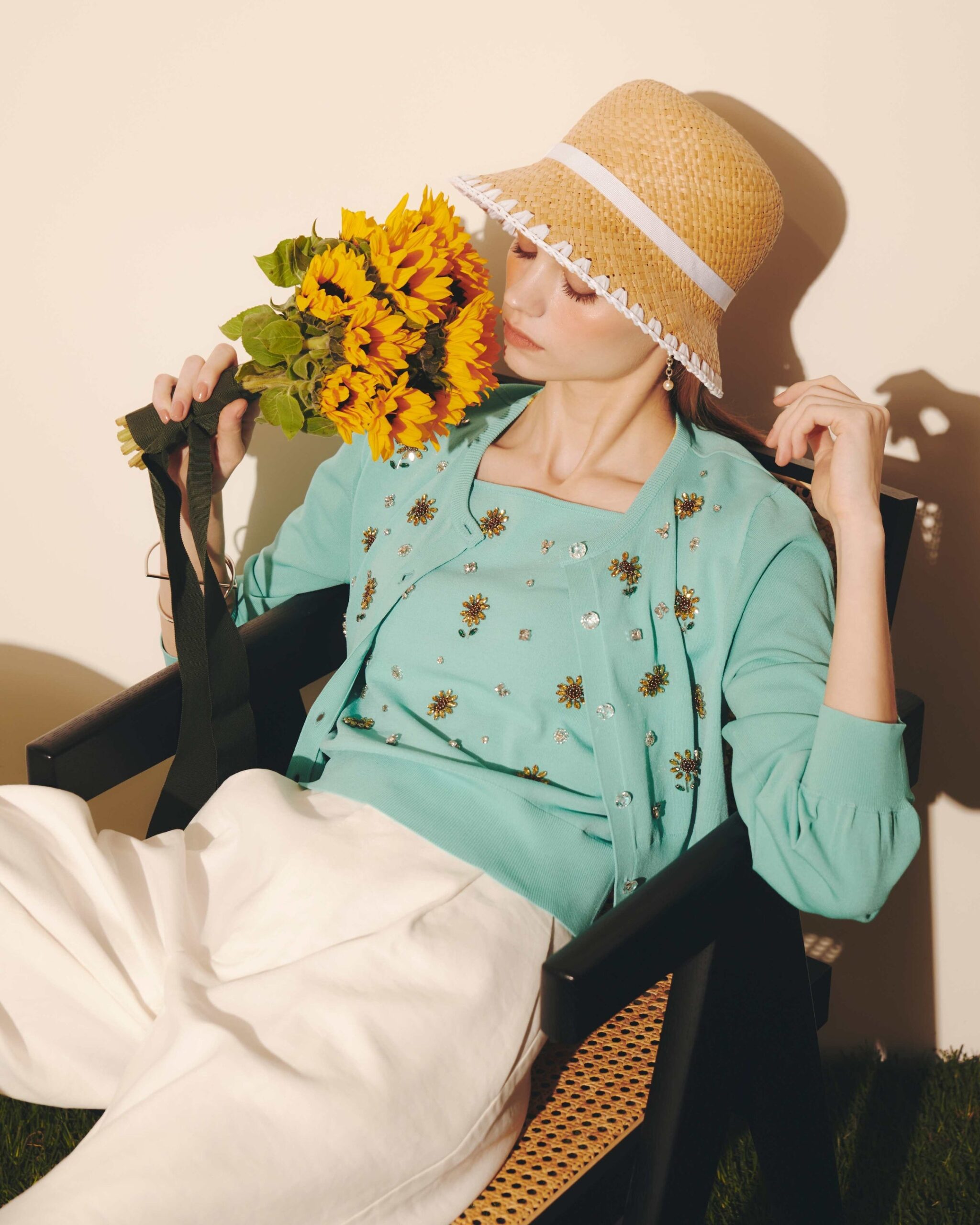 プリントやビジュー 表現されたひまわりモチーフが印象的な“SUN FLOWER”シリーズ。